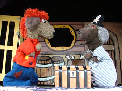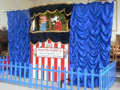 All of the Pinxton Puppets theatres include amplified sound and for their performances they are able to choose from a selection of sketches and stories. These range from the well-known, such as the Three Little Pigs, Hansel and Gretel and Little Red Riding Hood, through to the not so well-known, such as Robinson Crusoe and the Pirate on Treasure Island.